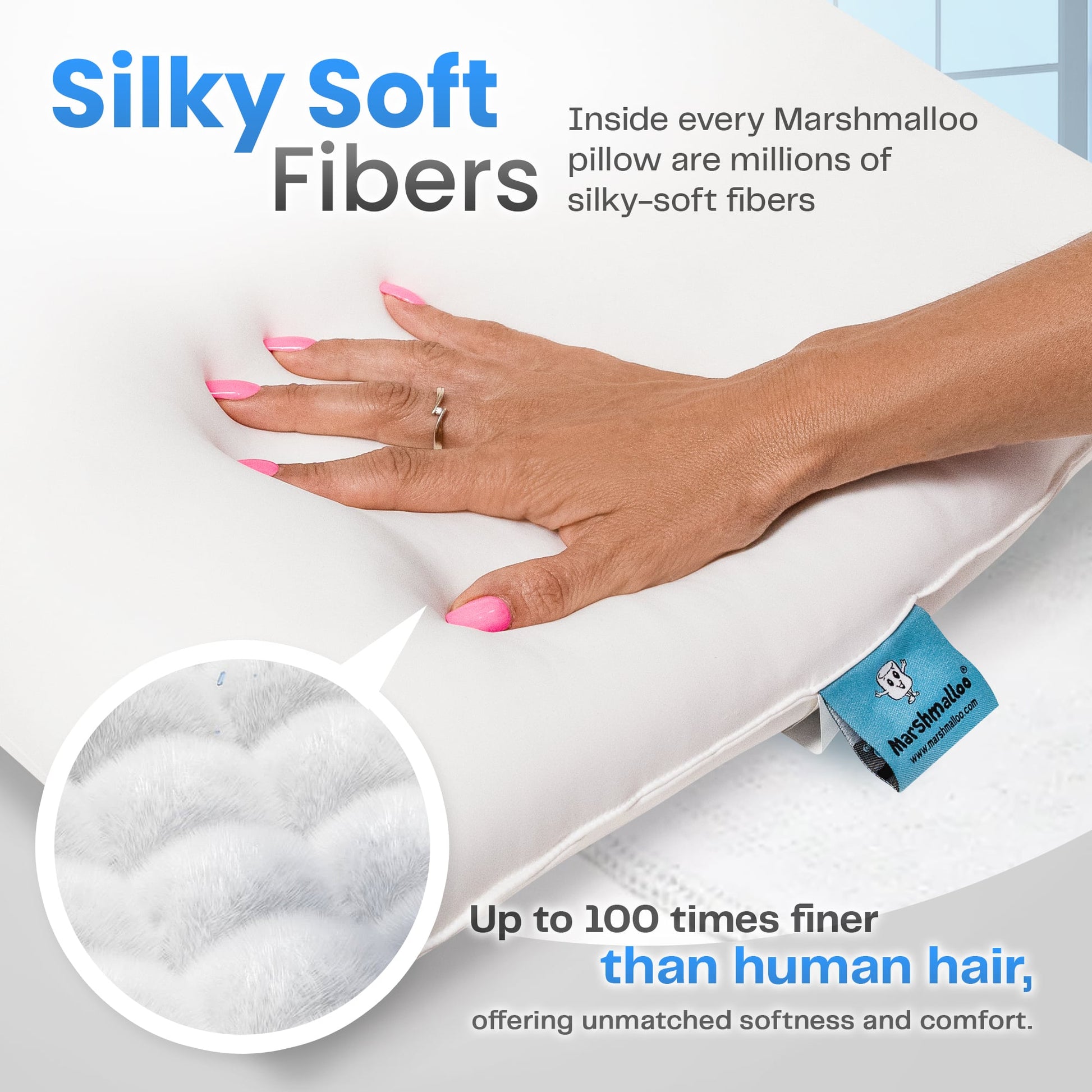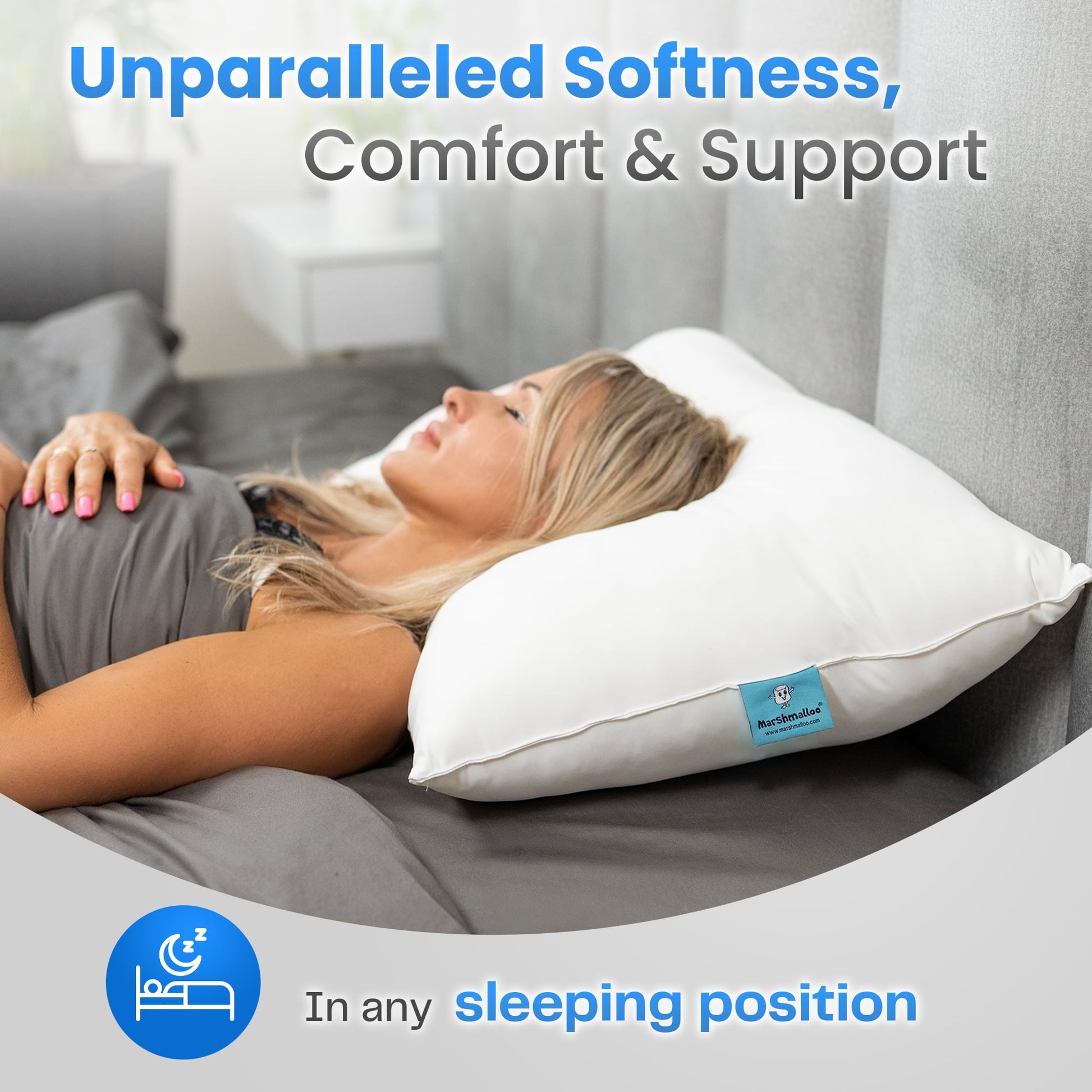 The Marshmalloo Pillow is made from premium hypoallergenic materials, including a microplush silkysoft filling and a breathable, durable cover to ensure ultimate comfort and long-lasting quality.